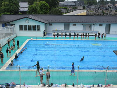 水泳の授業が始まりました。保護者の方々や高学年に清掃していただいたプールはとてもきれいで、子供たちも気持ちよさそうに泳いでいます。今日は天気も良く、気温も適度で、プール日和でした。子供に合わせたコース別で学習を進めています。