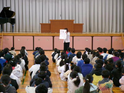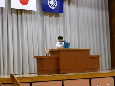 12月24日(水)2学期終業式が体育館にて行われました。校長先生からは、時間を守る・あいさつ・ていねいな言葉遣いについての振り返りのお話がありました。児童代表の言葉では、1年生と4年生の代表児童が、2学期の頑張りを発表しました。生徒指導担当の先生からも、冬休み中の課題や交通安全・スマホやSNSとの関わり方について児童へのお話がありました。また、10月に行われた市内陸上大会のソフトボール投げで大会新記録を樹立した6年児童へ立派な楯が贈られました。その後は各教室で、ひとりひとり通知表が渡されました。充実した冬休みになるよう、健康・安全に留意して楽しい年末年始を過ごしましょう。