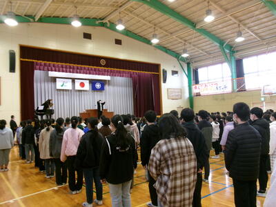 始業式では、背筋を伸ばして話を真剣に聞く馬室っ子の姿が多く見られ、新年も頑張ろうという想いが伝わってきました。3学期は1年間のまとめをする大事な学期です。1日、1日を大切に過ごしていきましょう。