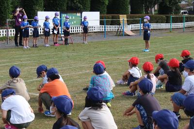 いよいよ6年生が参加する市内陸上大会が今週金曜日(16日)に迫ってきました。本日(13日・火)、4年生が中心となり、陸上選手を励ます会が行われました。