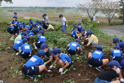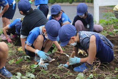 今年は6月からの学校再開であったので、児童の手でさつまいもの苗を植えることはできませんでしたが、順調に生育し、無事に収穫を迎えることができました。