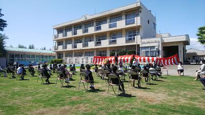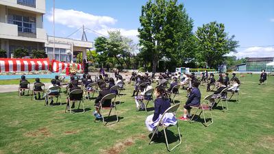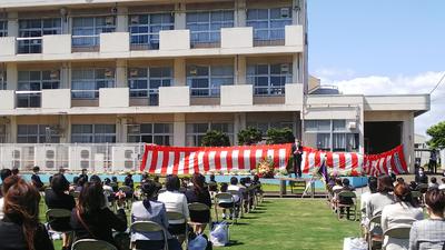 先日学校案内で紹介された中庭で行われました。