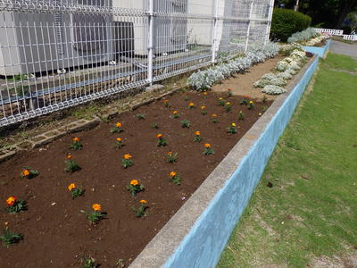 本日、学校では、花いっぱいの花壇を作るために校長がマリーゴールドとサルビアの苗を県立総合教育センター江南支所に取りに行ってきました。
